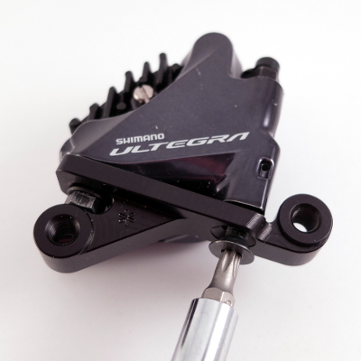 The Adapter/Caliper are adjusted using the same method as an I.S. caliper. Shim washers are used to adjust the position. Six washers are includes with each adapter. Different washers or special tools might be required. It is recommended to have the installation done by a qualified mechanic.
